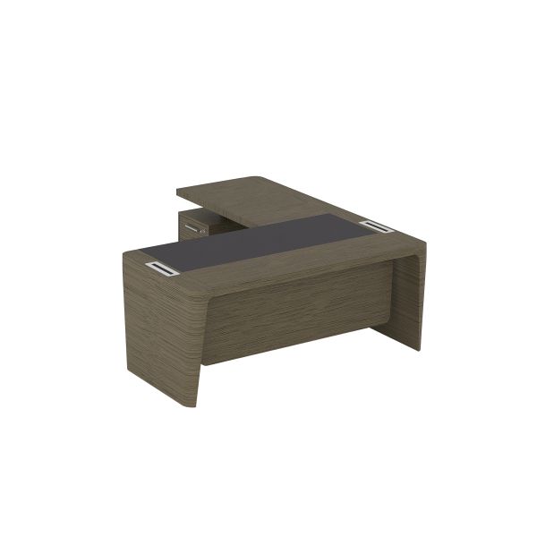 Стол для руководителя левый с кожаным бюваром, приставкой на малой тумбе и фронтальной панелью ПМ 154