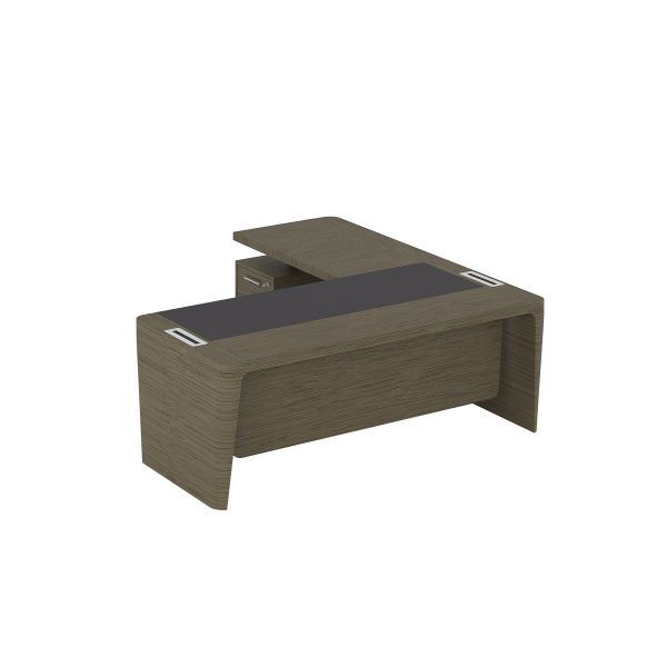 Стол для руководителя левый с кожаным бюваром, приставкой на малой тумбе и фронтальной панелью ПМ 164